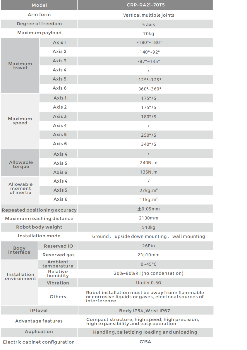 • Arm span of 2.13m,strong load capacity, large working range and high flexibility.