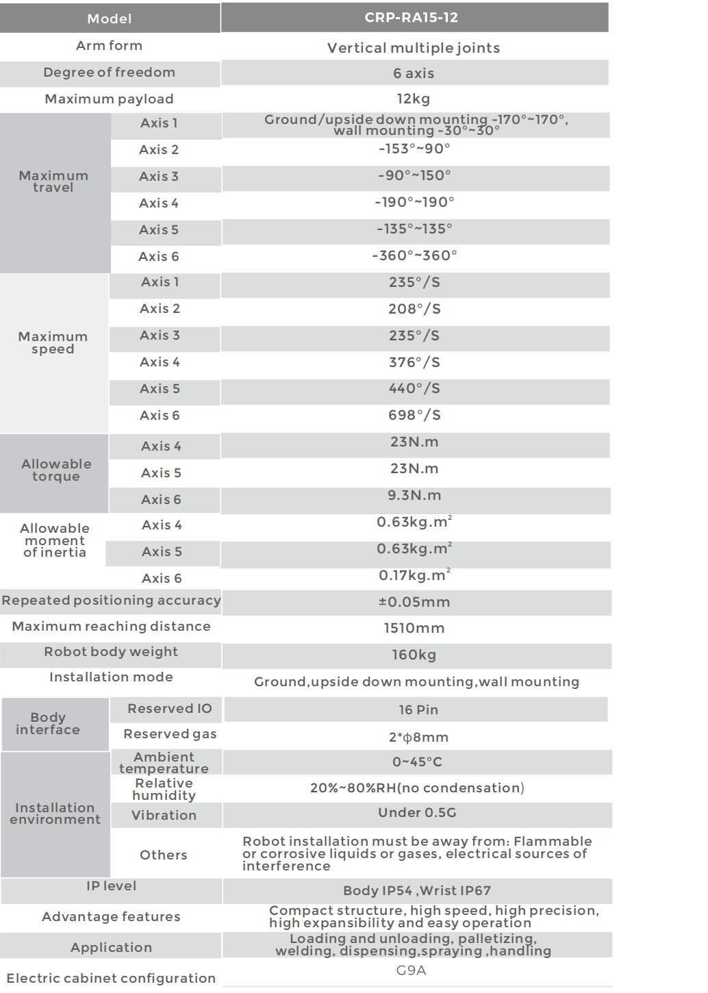 The design of the robot is highly compact, which is more light weight, especially the wrist is slender, so it can be applied in more scenarios.