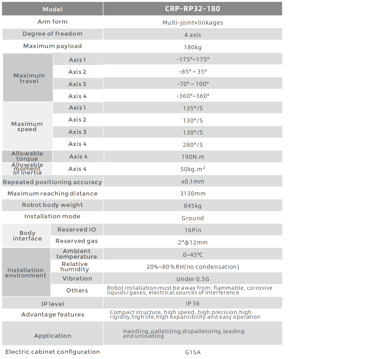 • The main cable adopts a flexible robot specific cable.