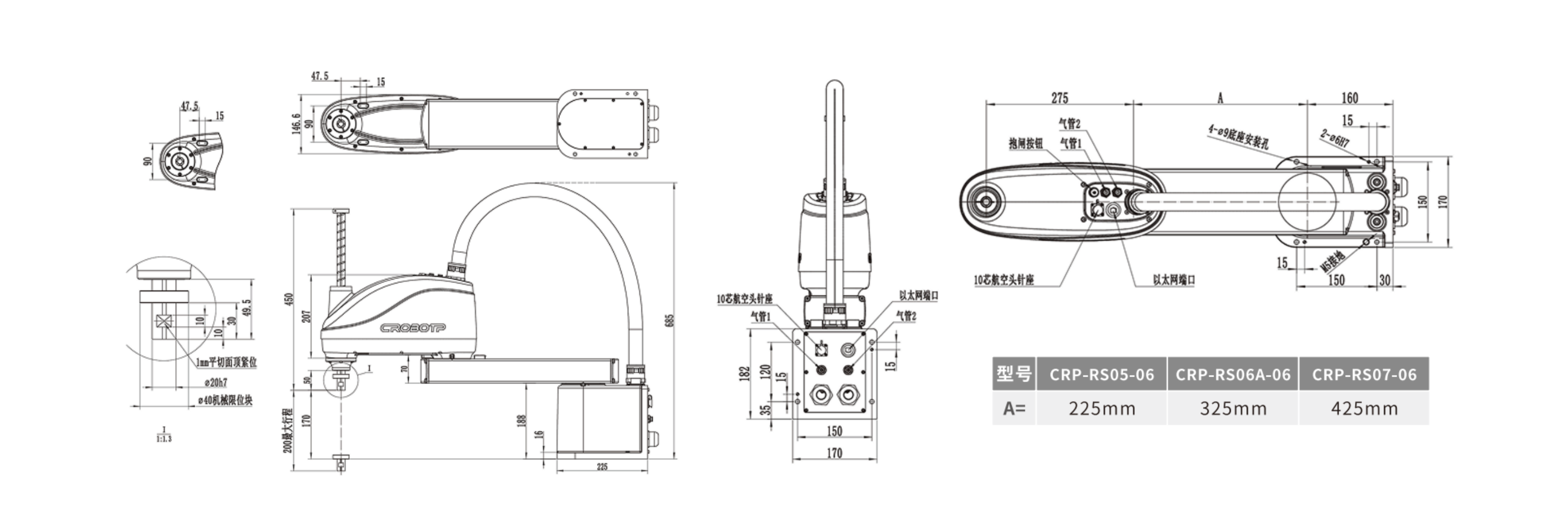 ? 手臂內(nèi)置千兆網(wǎng)線,便于相機連接。