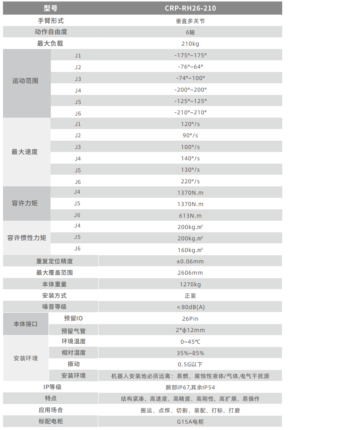 手臂電機(jī)內(nèi)置,外觀簡(jiǎn)潔,適于狹小空間作業(yè),運(yùn)動(dòng)更靈活。