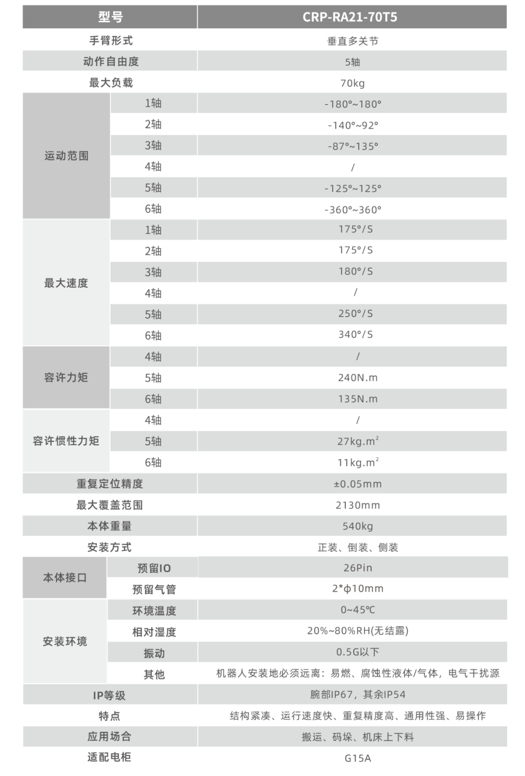 運行速度快,重復定位精度,適用于搬運、裝配、打磨等場景。