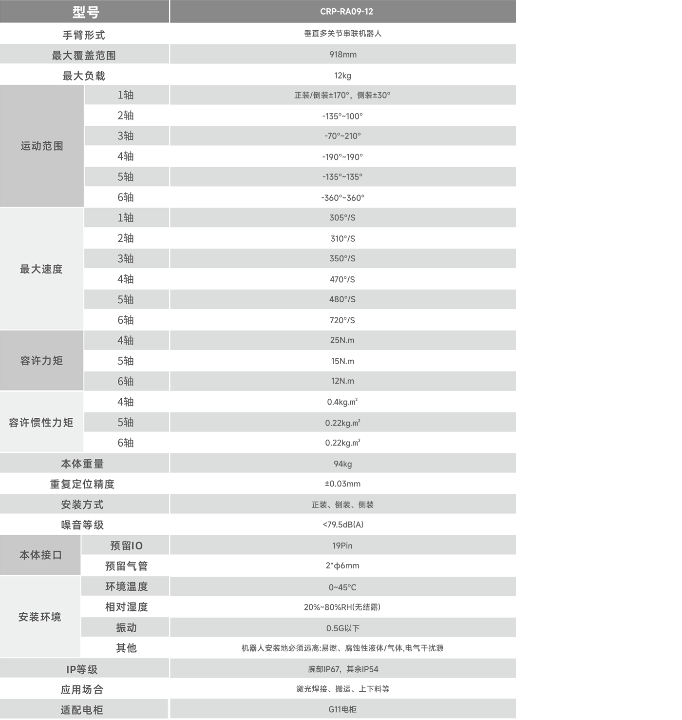 機器人負載12kg,臂展為900mm,機器人手腕具備更高的扭矩和慣量,負載承受能力更強,應(yīng)用的場景更廣。